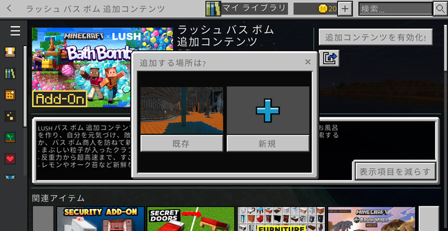 『ラッシュバスボム』は、マーケットプレイスにあるマイクラの追加コンテンツ(統合版ではアドオン、Java版ではMOD)です。