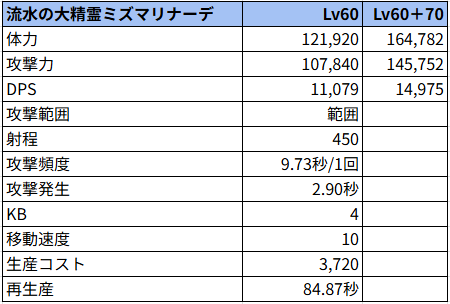 にゃんこ大戦争 流水の大精霊ミズマリナーデの性能